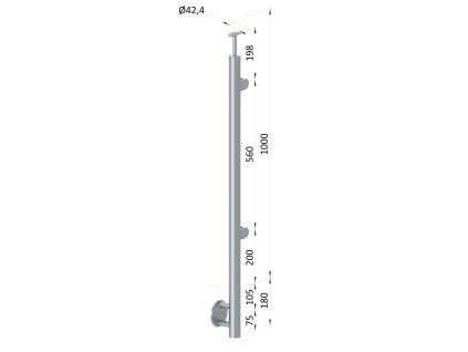 Nerezový sloup, boční kotvení, výplň: sklo, pravý, vrch pevný (ø 42,4x2 mm), leštěná nerez / AISI304