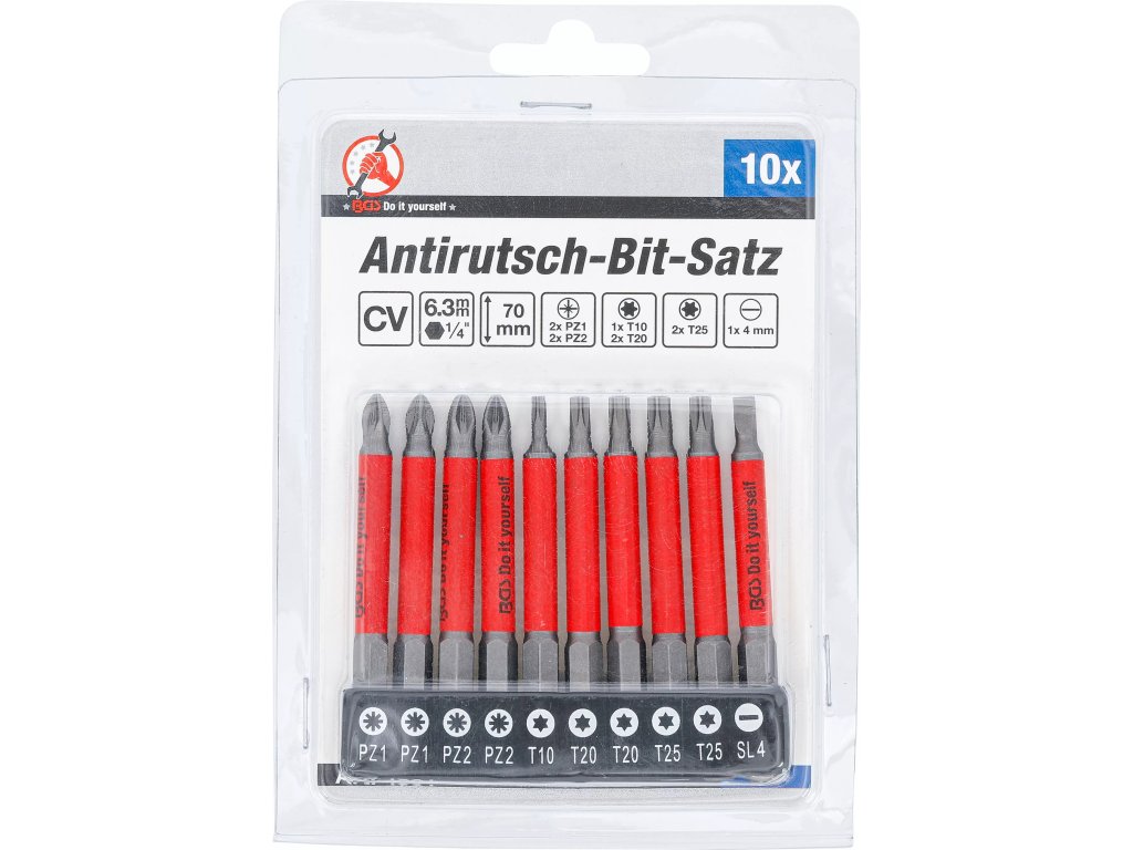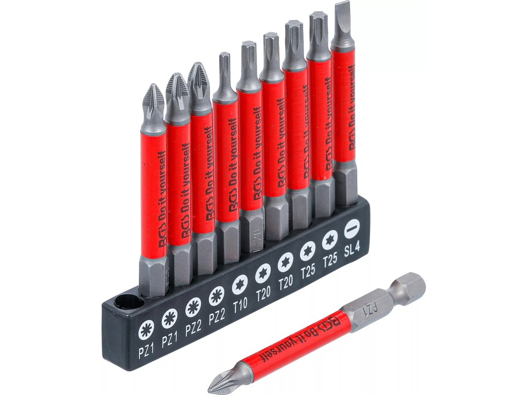 10 dílná sada bitů, magnetické, proti smykové, PZ, T, SL; chrom-vanadová ocel, pohon 6.3mm / 1/4`
