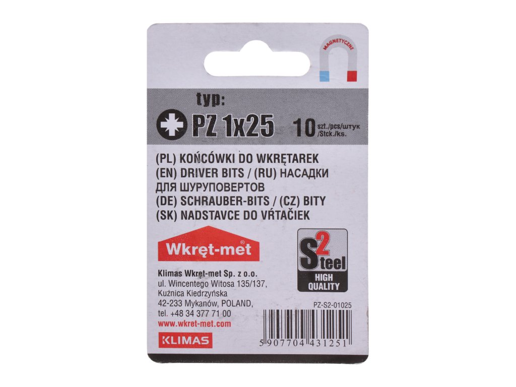 10 dílný blistr bitů PZ1, délka 25mm
