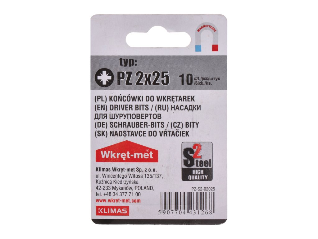 10 dílný blistr bitů PZ2, délka 25mm