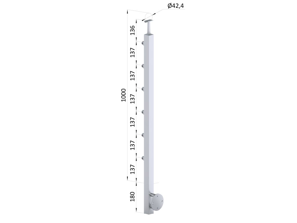 Nerezový sloup, boční kotvení, 6 řadový průchodný, venkovní, vrch pevný, (40x40 mm), broušená nerez K320 / AISI304Doplňkové parametry