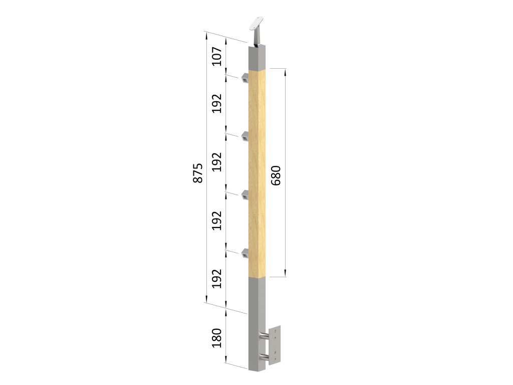 Dřevěný sloup, boční kotvení, 4 řadový, průchozí, vnější, vrch nastavitelný (40x40 mm), materiál: buk, broušený povrch s nátěrem BORI (bezbarvý)Doplňkové parametry