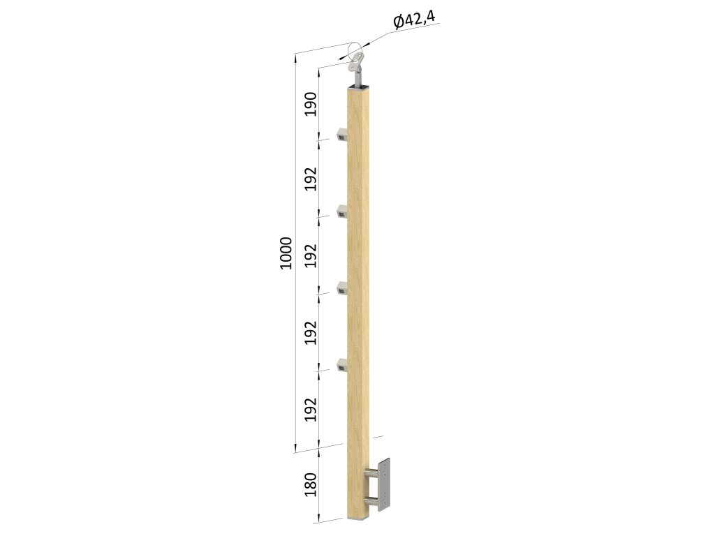 dřevěný sloup, boční kotvení, 4 řadový, průchozí, vnější, vrch nastavitelný, (40x40mm), materiál: buk, broušený povrch bez nátěru