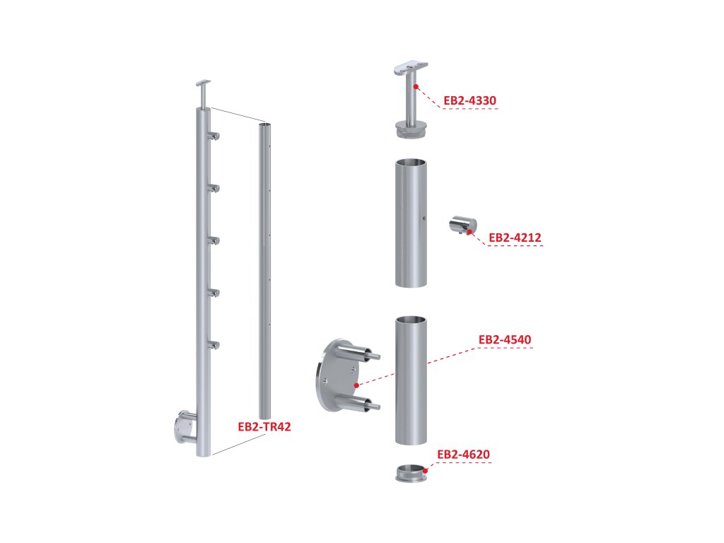 Nerezový sloup, boční kotvení, 5 řadový průchodný, venkovní, vrch pevný (ø 42,4x2 mm), broušená nerez K320 / AISI316Doplňkové parametry