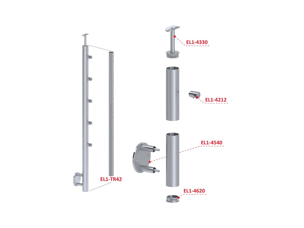 Nerezový sloup, boční kotvení, 5 řadový průchodný, venkovní, vrch pevný (ø 42,4x2 mm), leštěná nerez / AISI304Doplňkové parametry