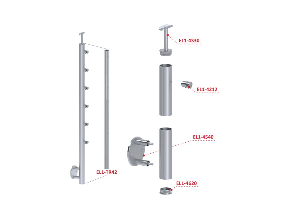 Nerezový sloup, boční kotvení, 6 řadový průchodný, venkovní, vrch pevný (ø 42,4x2 mm), leštěná nerez / AISI304Doplňkové parametry