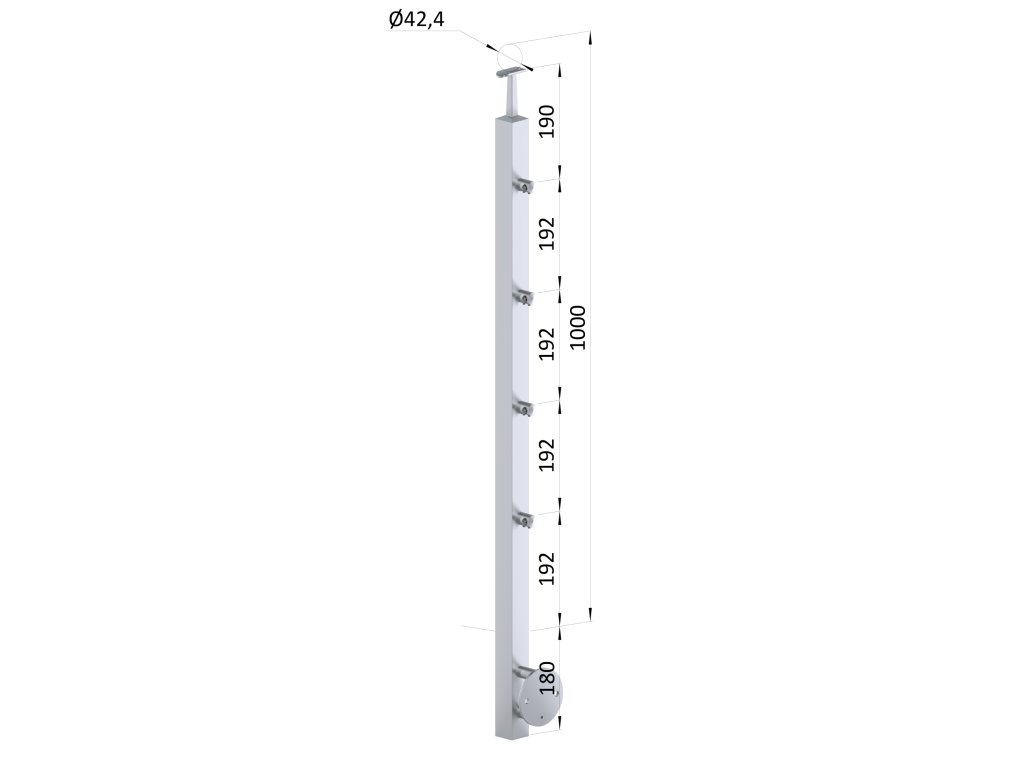 Nerezový sloup, boční kotvení, 4 řadový průchodný, vnitřní, vrch pevný, (40x40 mm), broušená nerez K320 / AISI304Doplňkové parametry
