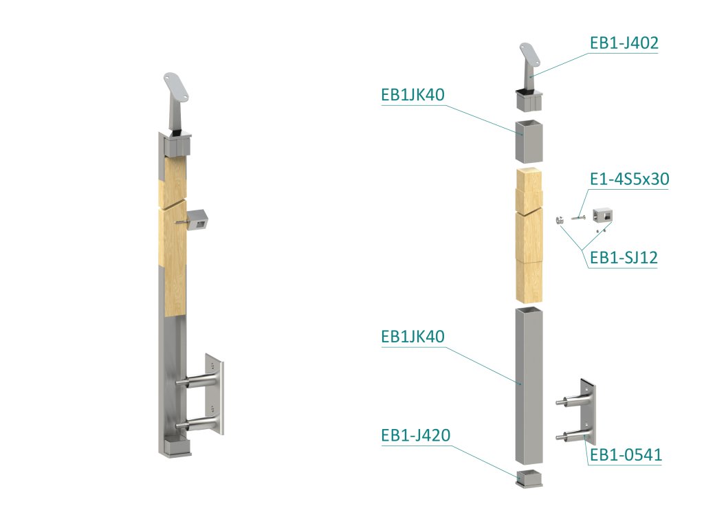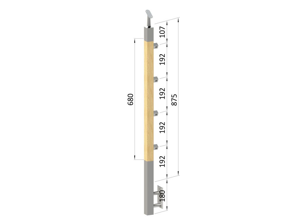 dřevěný sloup, boční kotvení, 4 řadový, průchozí, vnitřní, vrch nastavitelný (40x40mm), materiál: buk, broušený povrch bez nátěru