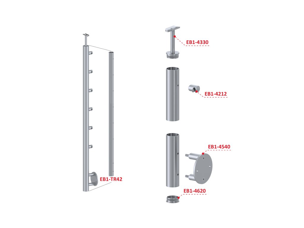 Nerezový sloup, boční kotvení, 6 řadový průchodný, vnitřní, vrch pevný (ø 42,4x2 mm), broušená nerez K320 / AISI304Doplňkové parametry