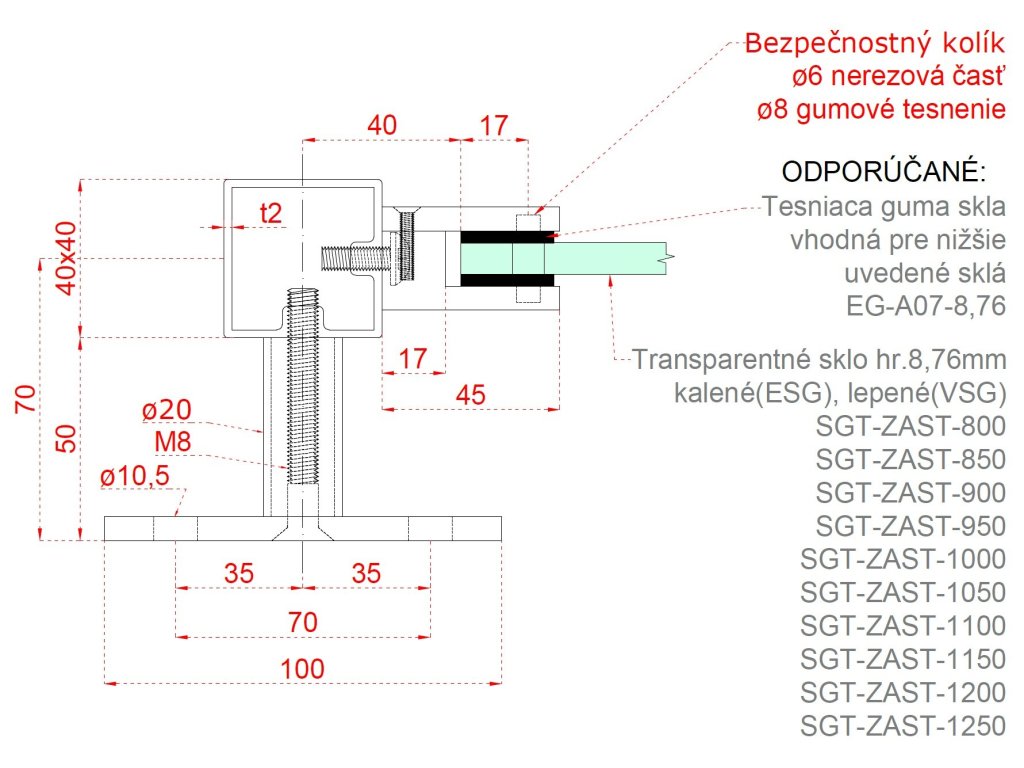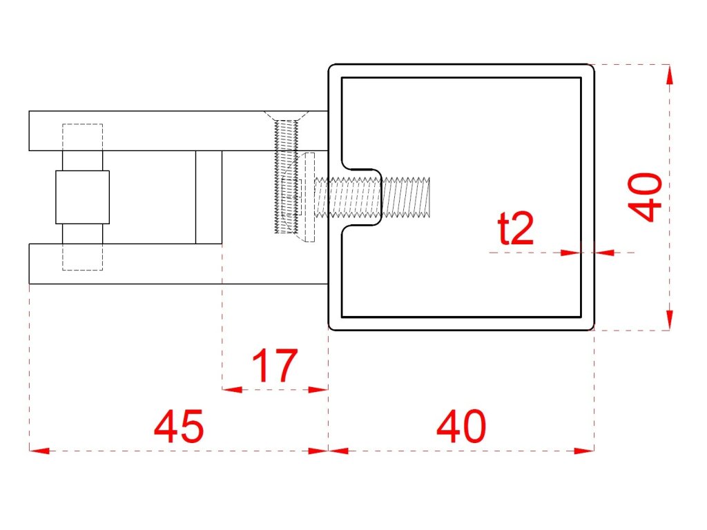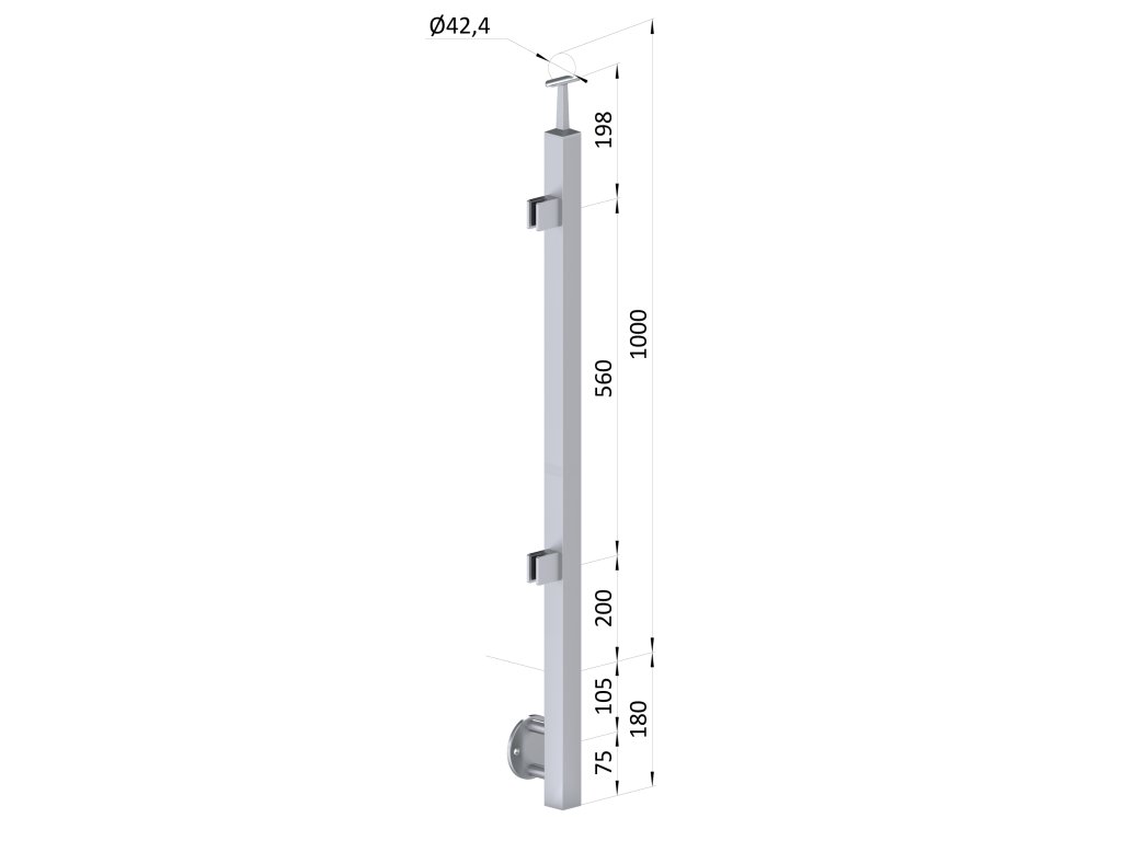 nerezový sloup, boční kotvení, výplň: sklo, levý, vrch pevný (40x40 mm)