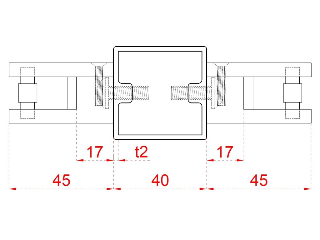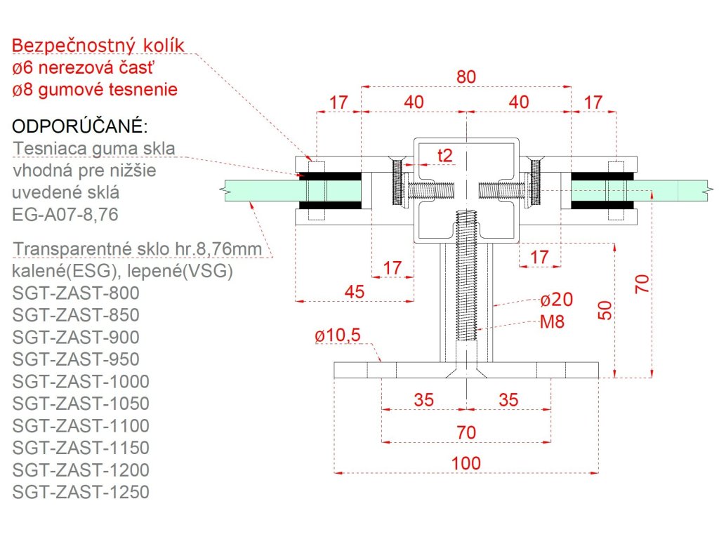 Nerezový sloup, boční kotvení, výplň: sklo, průchozí, vrch pevný, (40x40 mm), broušená nerez K320 / AISI304Doplňkové parametry