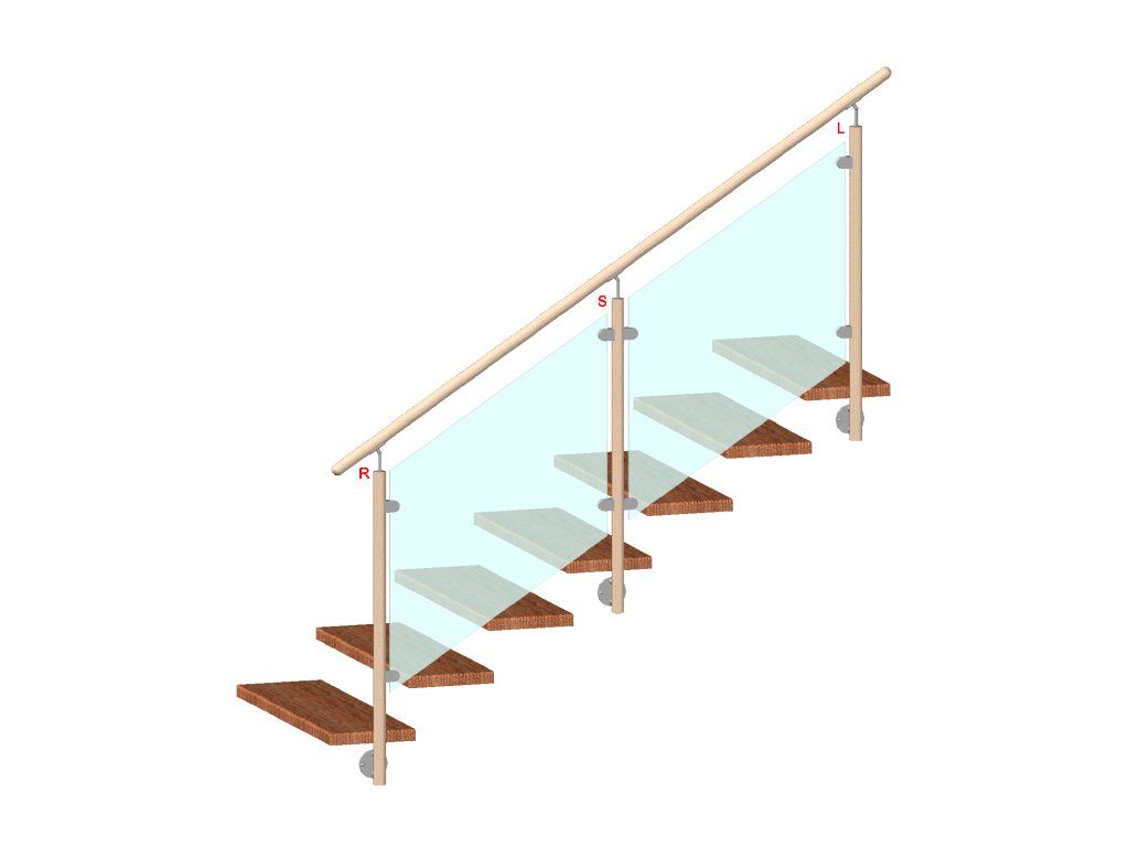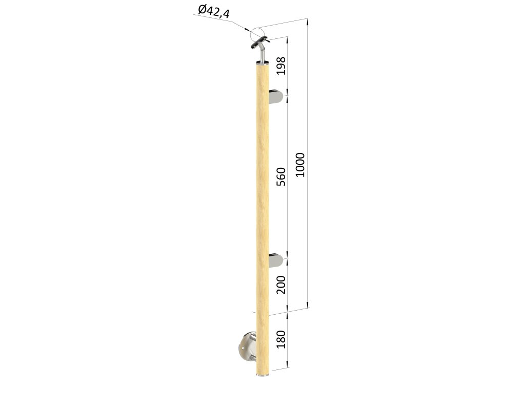 Dřevěný sloup, boční kotvení, výplň: sklo, pravý, vrch nastavitelný (ø 42mm), materiál: buk, broušený povrch s nátěrem BORI (bezbarvý)Doplňkové parametry