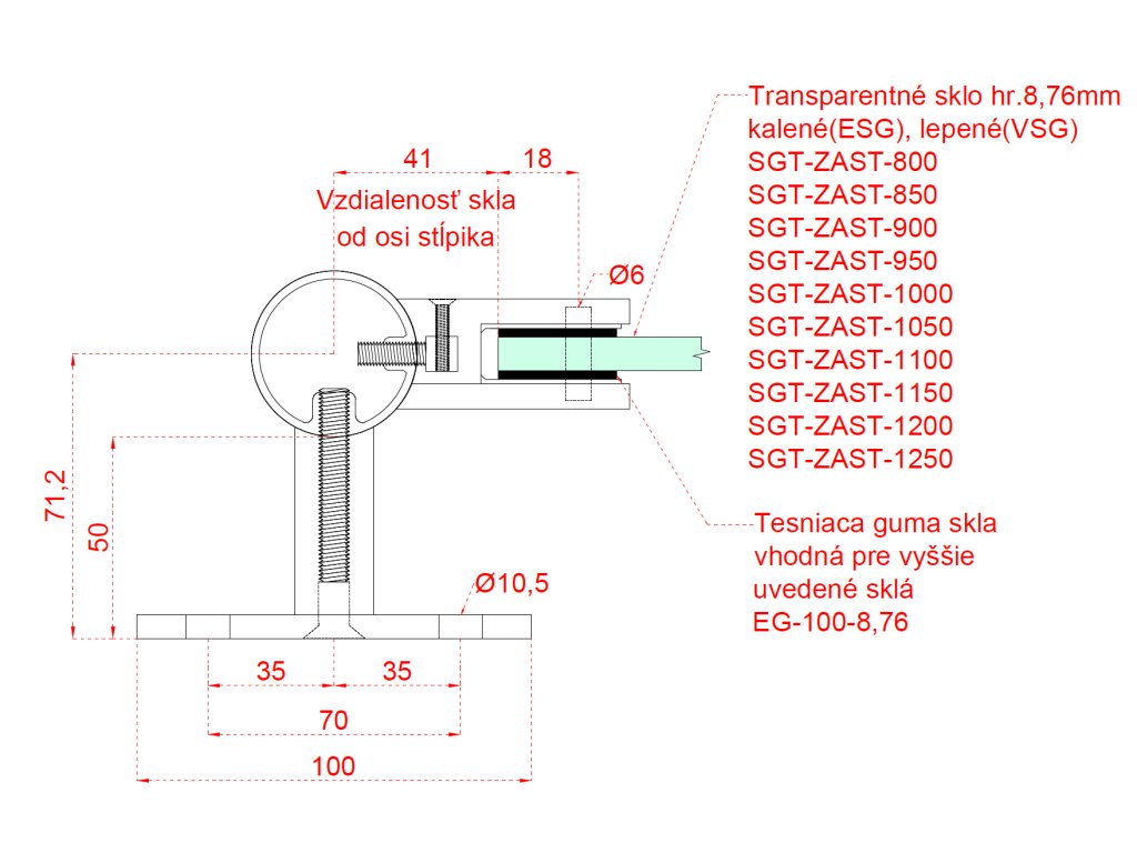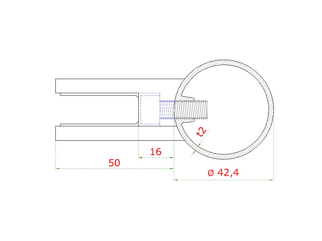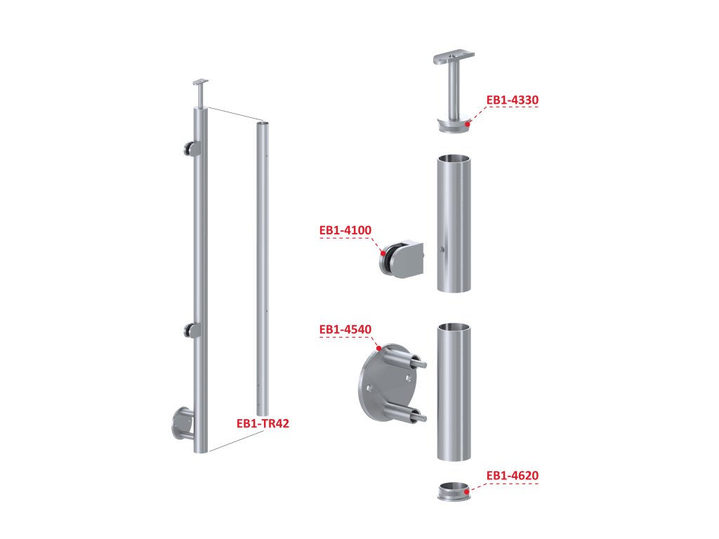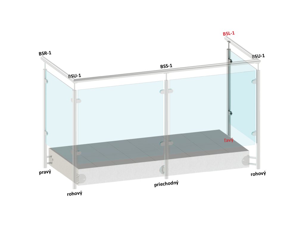 Nerezový sloup, boční kotvení, výplň: sklo, levý, vrch pevný (ø 42,4x2 mm), broušená nerez K320 / AISI304Doplňkové parametry