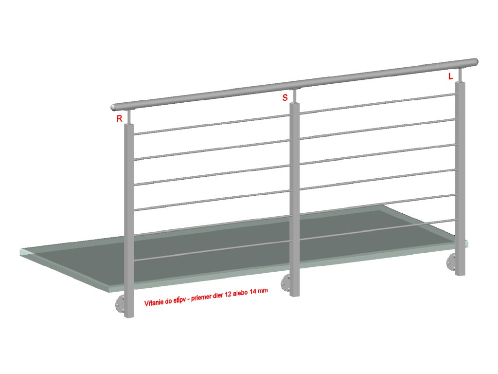 Nerezový sloup, boční kotvení, 6 děrový koncový, levý, vrch pevný, (40x40 mm), broušená nerez K320 / AISI304Doplňkové parametry