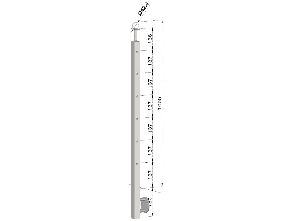 Nerezový sloup, boční kotvení, 6 děrový průchodný, vrch pevný, (40x40 mm), broušená nerez K320 / AISI304