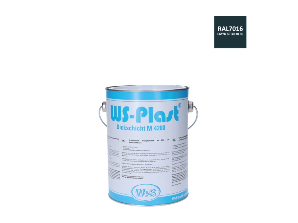 W + S barva antikorozní polomatná na zinek, hliník / 11kg / kg barva antracit, Kompatibilní barva se sprejem RAL7016.SPWS-Plast® RAL7016.2 je čistý akrylátový nátěrový systém, který díky svému speciálnímu složení přilne na zinkové a hliníkové povrchy bez jakéhokoliv základního nátěru.