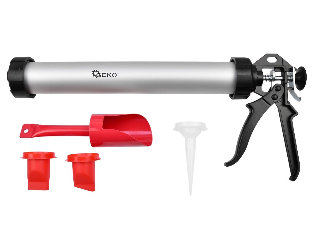 Hliníková vytlačovací pistole se sadou nástavců, určená pro hmoty ve fólii a kartuších. Pistole má tubus a pístnici z oceli, tělo a rukojeť jsou vyrobeny z hliníku.Vlastnosti produktu: