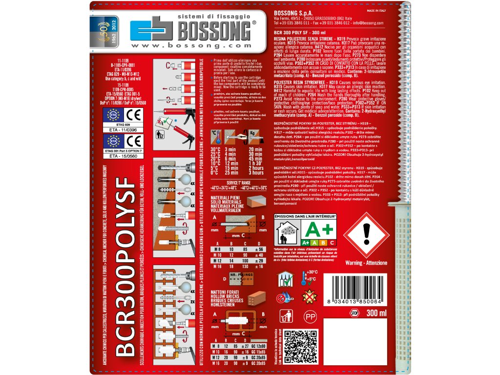 Chemické kotvení 300 ml, polyesterové, bez styrenu, se směšovacím hrotem, vhodná pro použití v interiéruBCR 300 POLY SF-300ml, BEZPEČNOSTNÍ POKYNY
