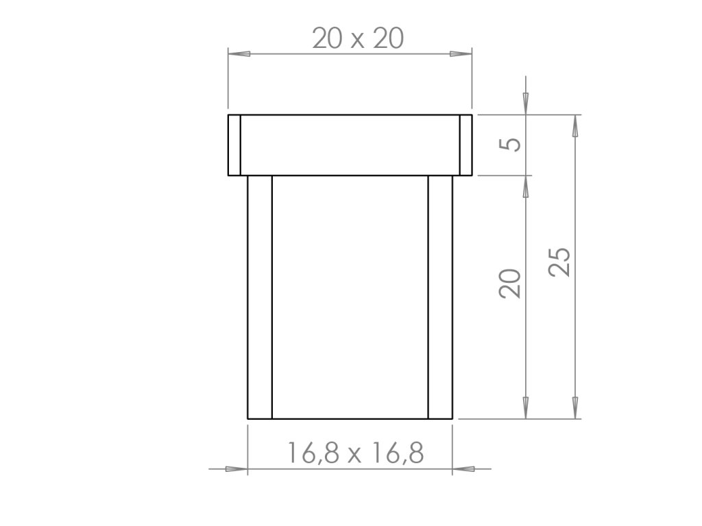 Ukončení na jekl 20x20x1,5 mm, broušená nerez K320 / AISI304Doplňkové parametry