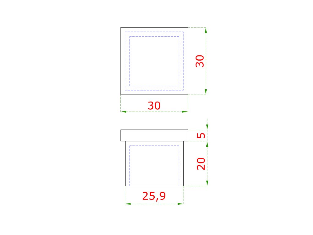 Ukončení na jekl 30x30x2,0 mm, broušená nerez K320 / AISI304Doplňkové parametry