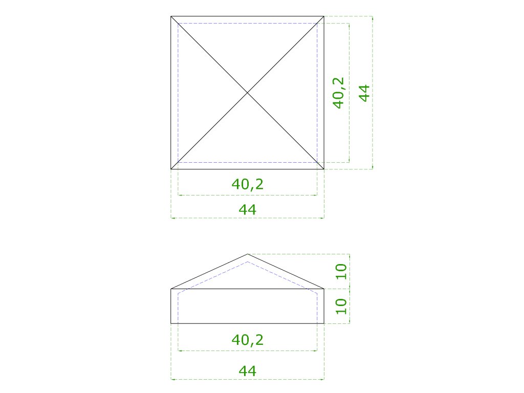 Ukončení stříška na jekl (40x40 mm), broušená nerez K320 / AISI304Doplňkové parametry