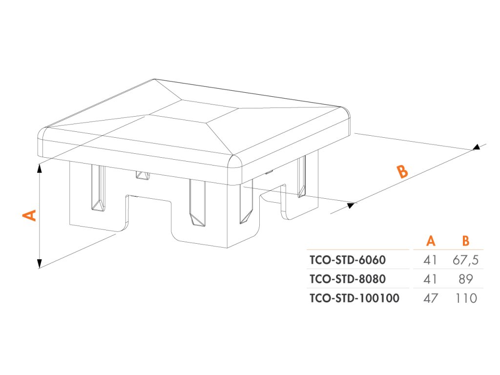 LOCINOX® čtvercová stříška s přesahem, 100×100 mm, materiál polypropylen, barva černá