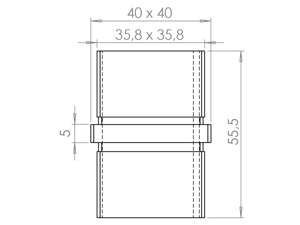 Spojka, přímá na jekl 40x40x2 mm, broušená nerez K320 / AISI304Doplňkové parametry