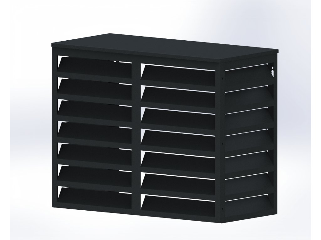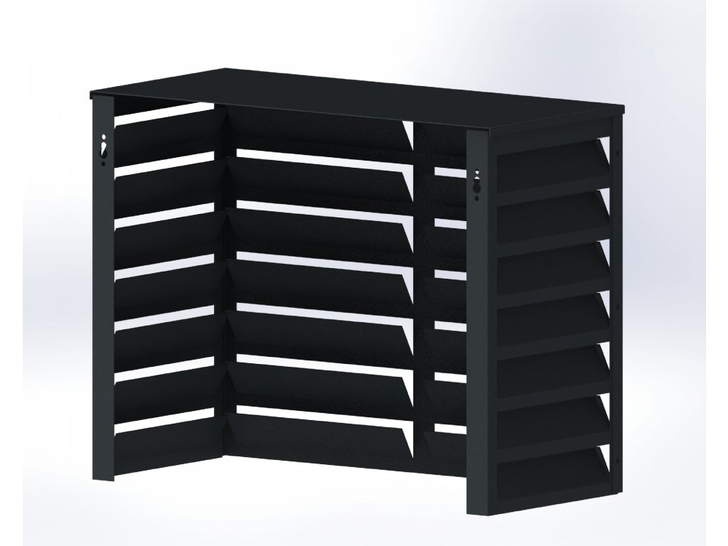 Elegantní a odolný kryt určený pro ochranu venkovní jednotky klimatizace. Moderní černé provedení se snadno sladí s fasádou domu nebo komerční budovy a zároveň poskytuje spolehlivou ochranu před poškozením, korozí a nečistotami.