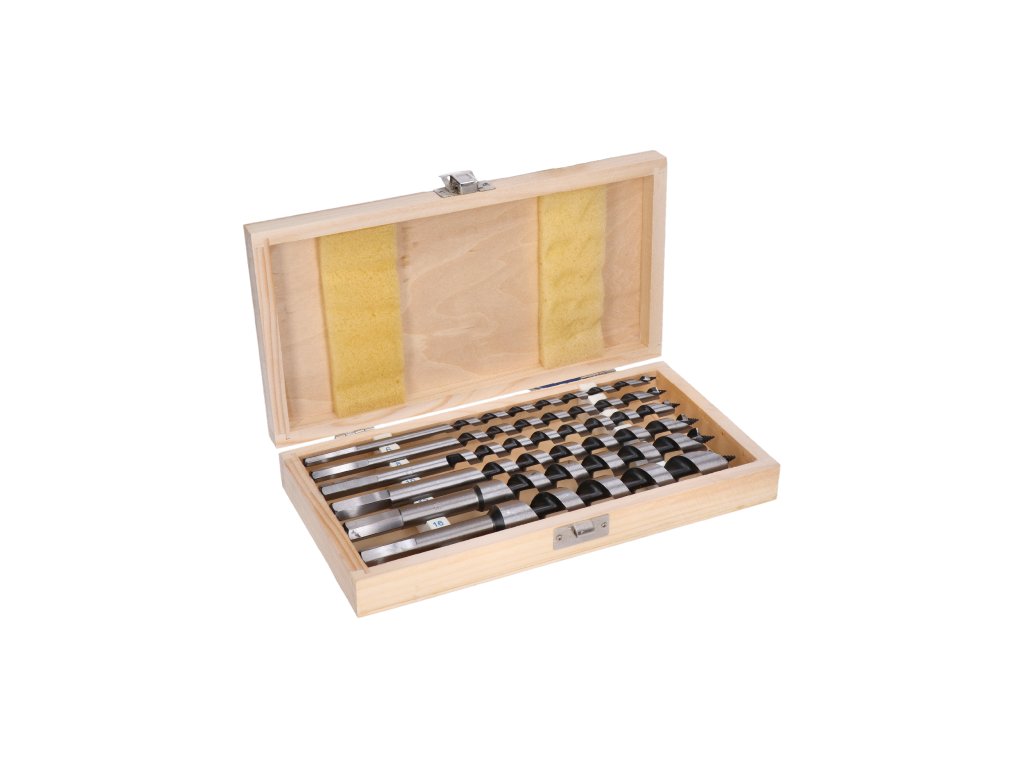 Čepel je zakončena ostrým hrotem pro snadné zahájení vrtání. Rychlý a hladký odvod třísek. Šestihranná stopka pro uchycení ve standardních 13 mm sklíčidlech.Sada vrtáků obsahuje: