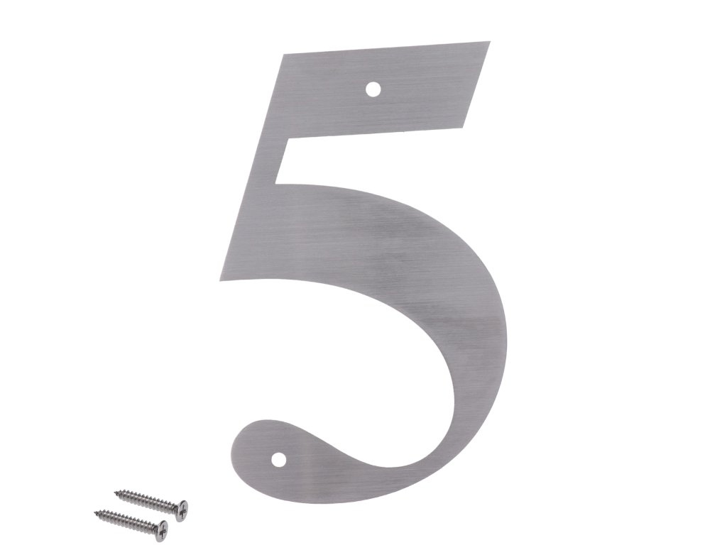 Číslo domovní 5, (156x1.5mm), s dírami, broušená nerez K320 / AISI 304