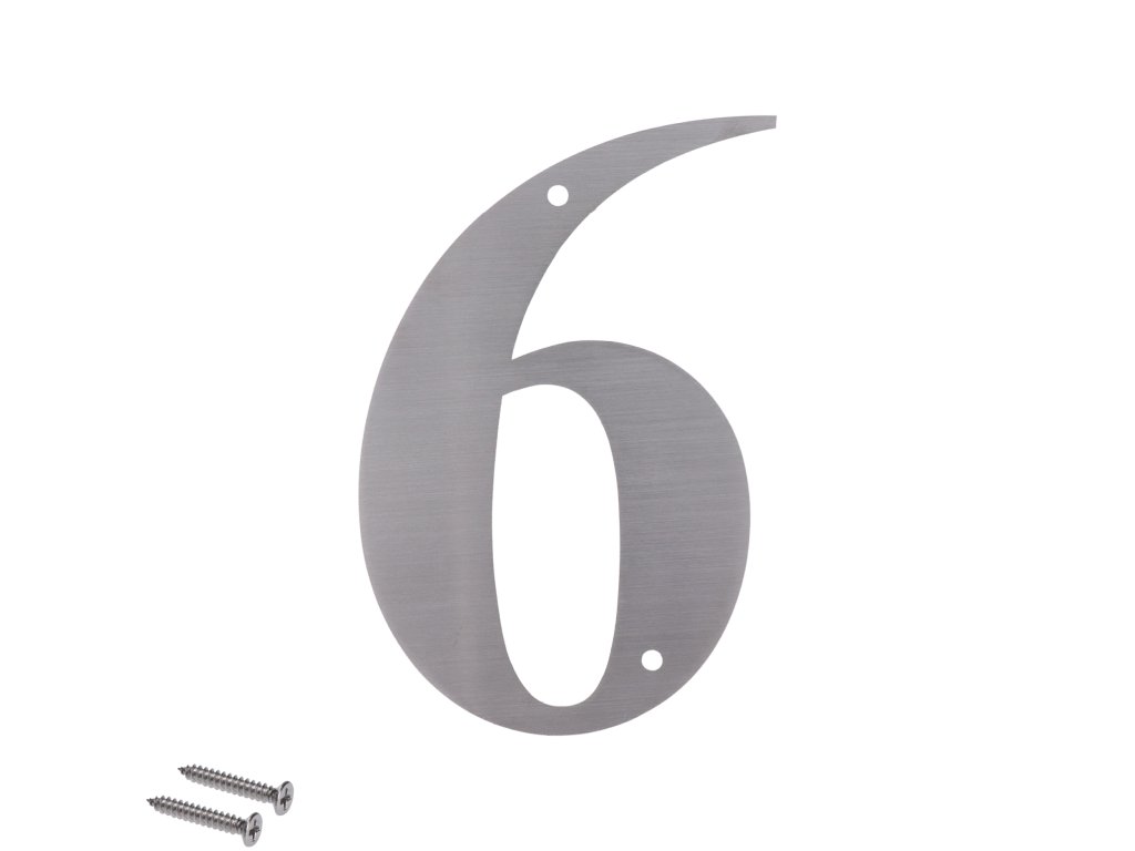 Číslo domovní 6, (127x1.5mm), s dírami, broušená nerez K320 / AISI 304