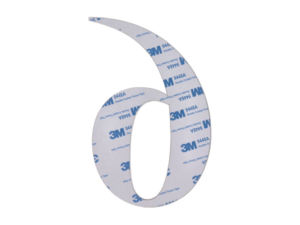Číslo domovní 6, (156x1.5mm), s 3M páskou, broušená nerez K320/AISI 304