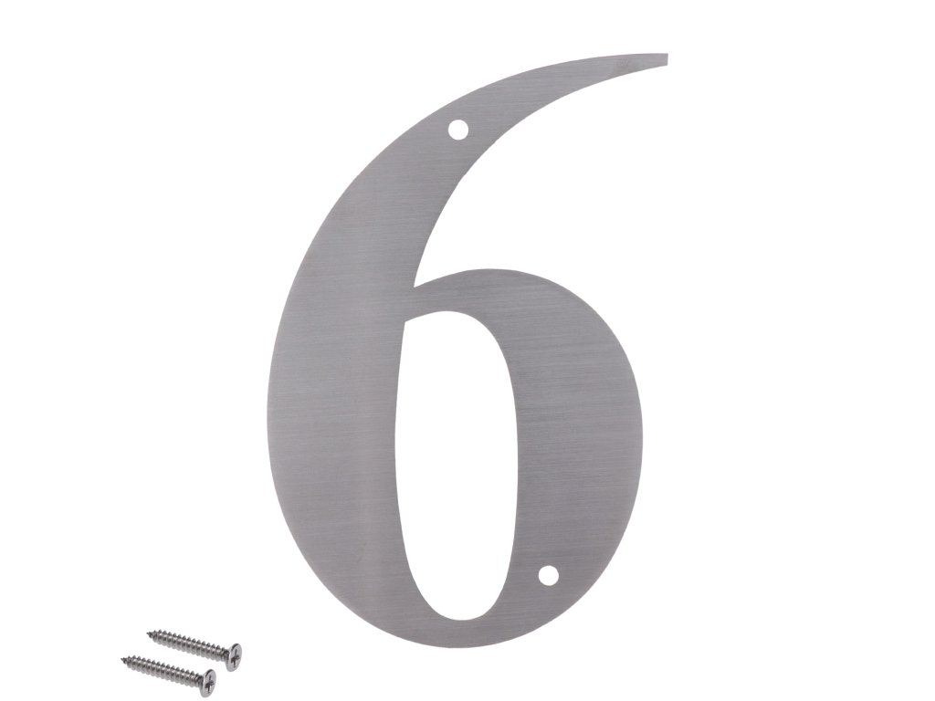 Číslo domovní 6, (156x1.5mm), s dírami, broušená nerez K320 / AISI 304