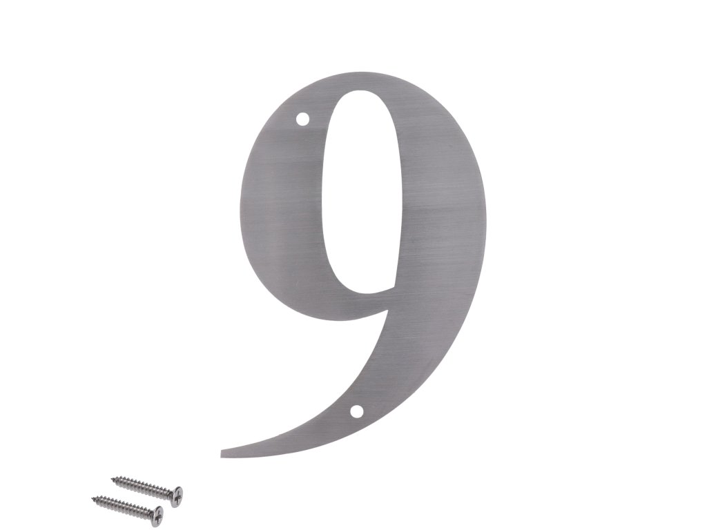 Číslo domovní 9, (127x1.5mm), s dírami, broušená nerez K320 / AISI 304