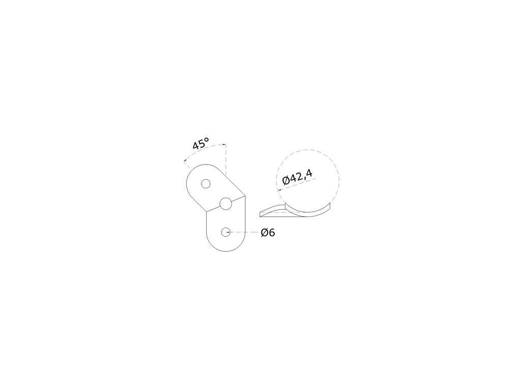 Dopojovací deska (úhel 45°) na trubku ø 42,4 mm, broušená nerez K320 / AISI316Doplňkové parametry
