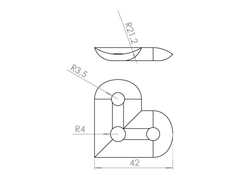 Dopojovací deska (úhel 90 °) na trubku ø42,4 mm, leštěná nerez / AISI304Doplňkové parametry