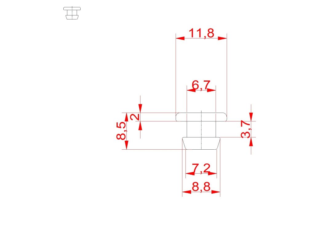 Doraz gumový průměr 11 mm, H-9 mm, pro díru 6 mmDoplňkové parametry