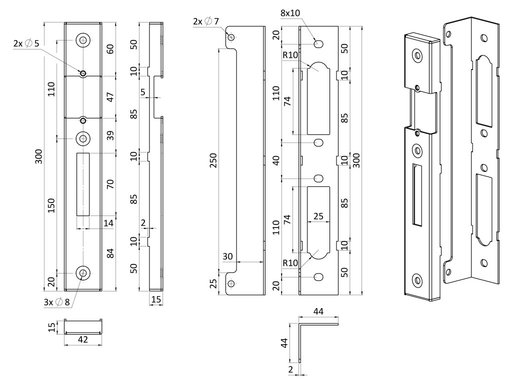 Doraz pro branku na elektrozámek 47x17x300 mm, oboustranný