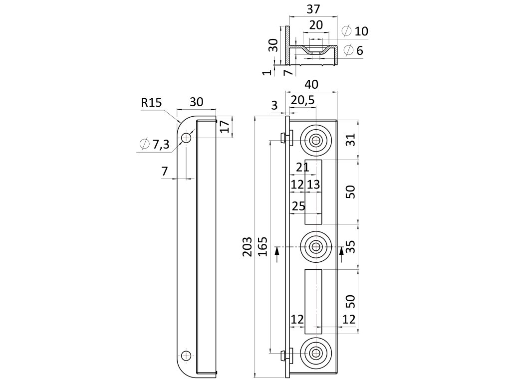 Doraz pro branku z profilu 40 x 40 mm, 197 x 30 x 40 mm, pravý / levý, pozinkovaný povrch