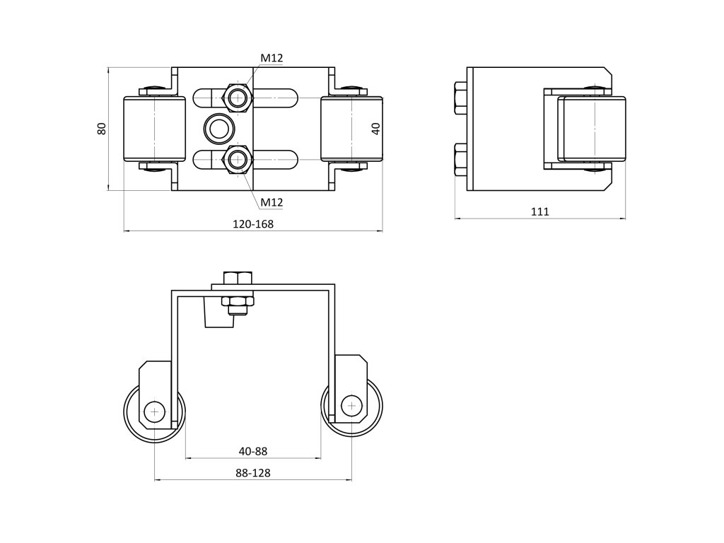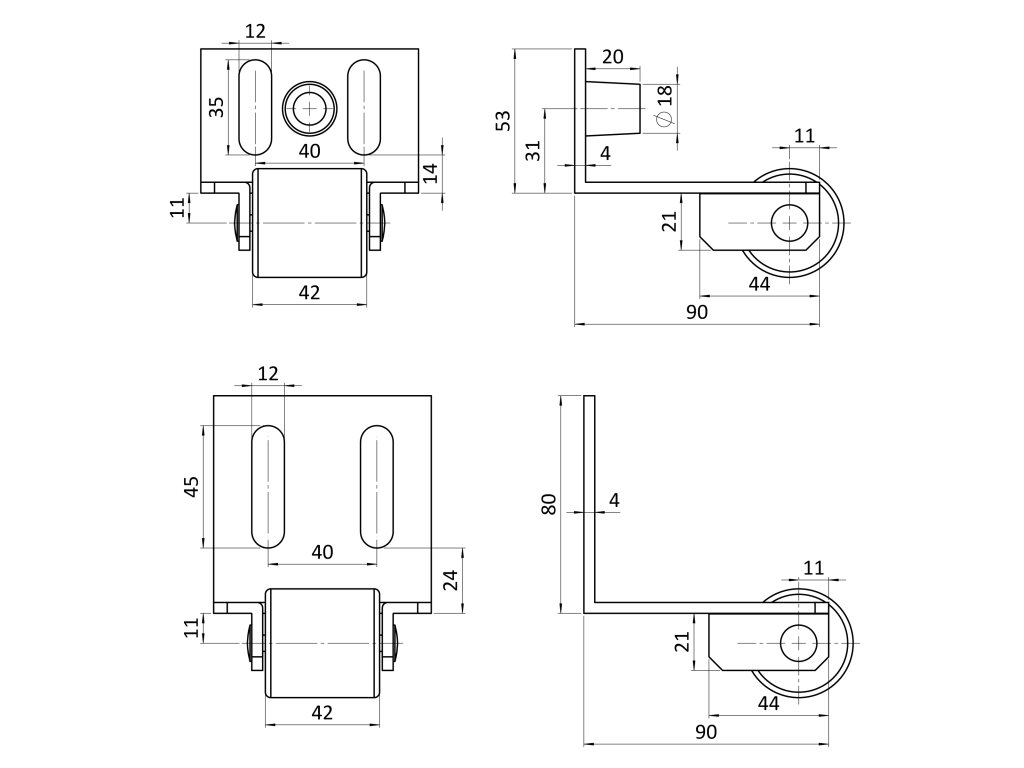 Horní doraz brány 160x80x105x4mm, regulovatelná šířka 41-86mm, bíly zinek