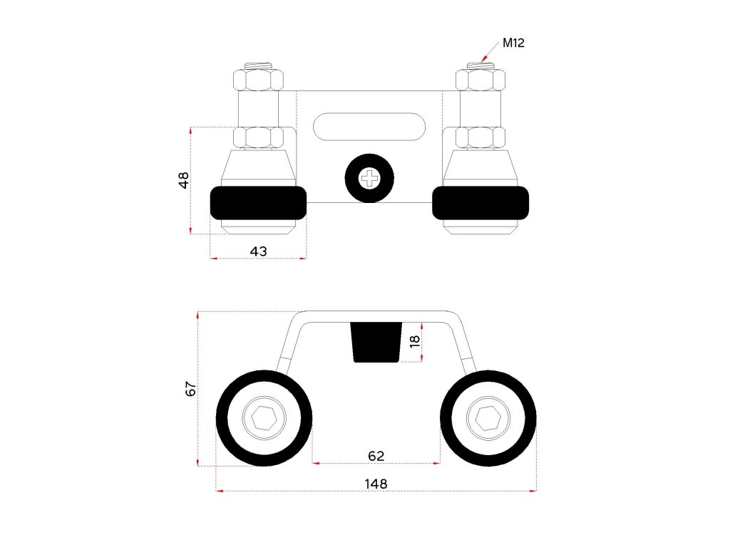 Horní doraz s vodícími gumovými kladkami 60 mm