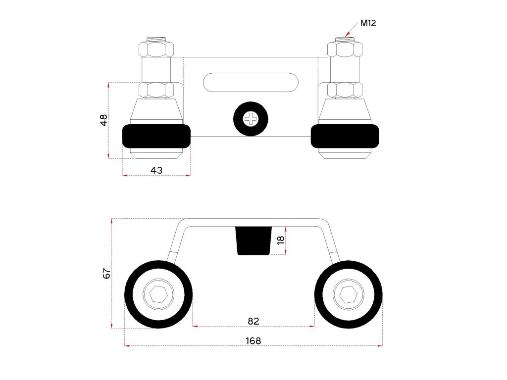 Horní doraz s vodícími gumovými kladkami 80 mm