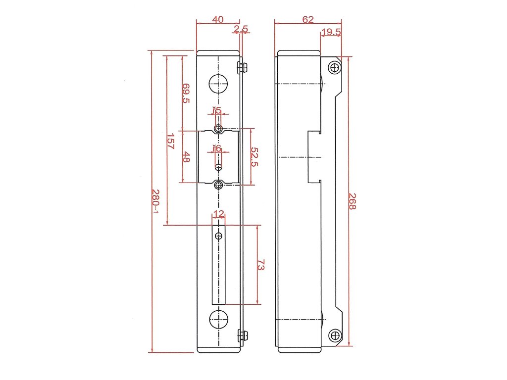 Kryt elektromagnetického zámku, 280 x 40 x 40 mm, levý a pravý