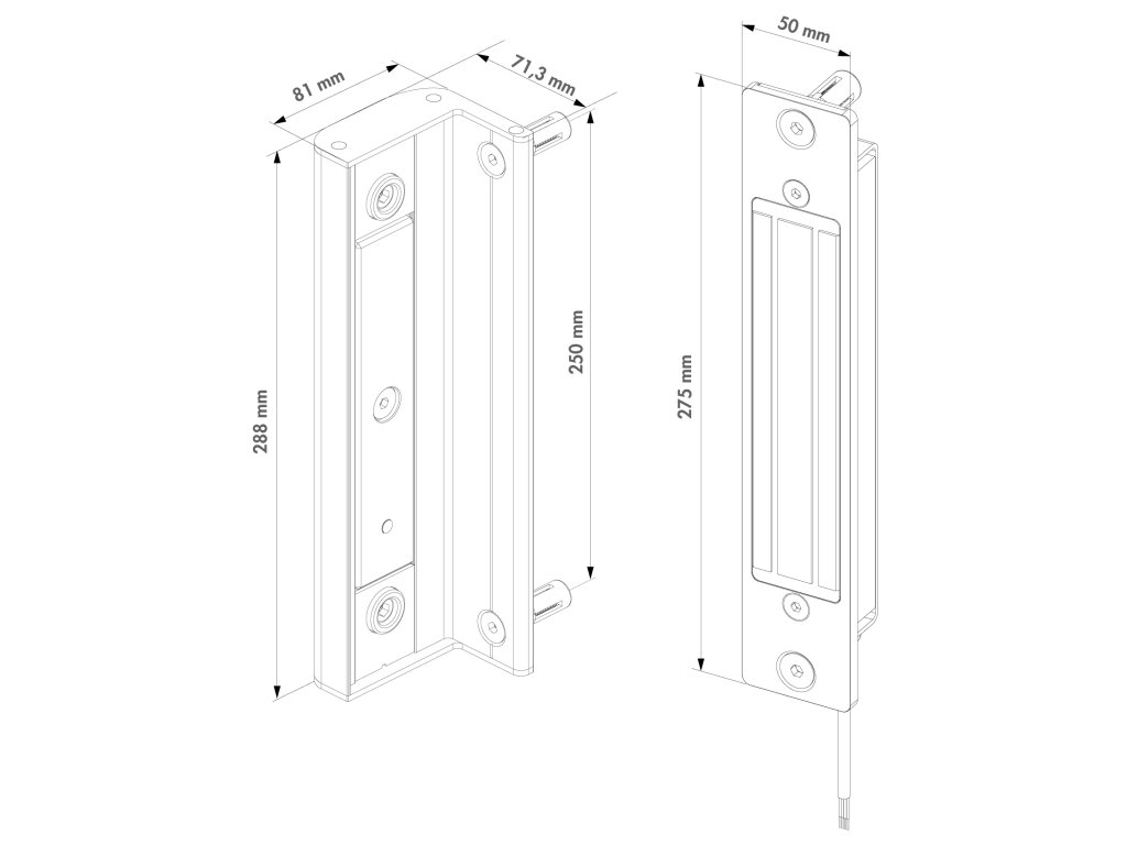 Přídržný elektromagnet s garantovanou přídržnou silou minimálně 2500N. Přídržná síla je testována na každém elektromagnetickém zámku. Gumové nárazníky zabraňují otřesům brány a poškození jejího příslušenství při hrubém zacházení. Pro snadné otevírání, elektromagnetický zámek je vybaven systémem pro odstranění zbytkového magnetismu. Napájení 12V - 24V i AC/DC. Zámek je univerzální pro levé i pravé otevírání.Technické informace: