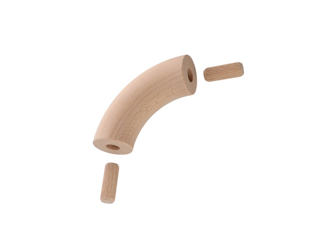 Dřevěný spojovací oblouk (ø 42 mm / 90°), materiál: buk, broušený povrch bez nátěru
