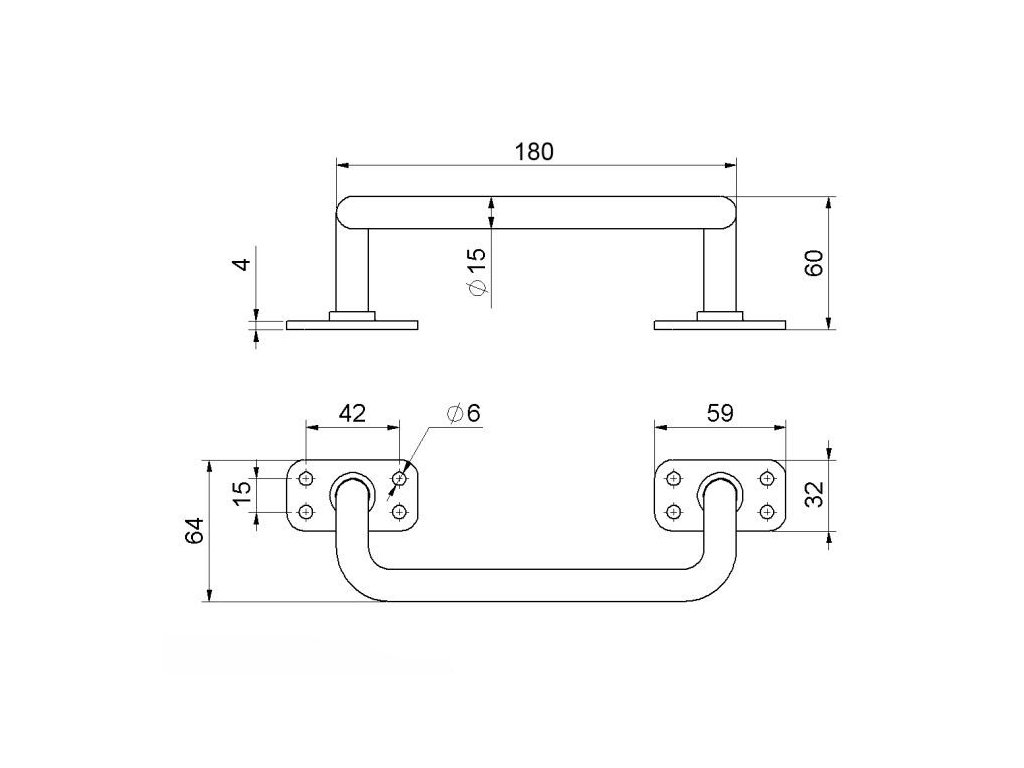 Madlo 180 x 64 mm, ø 14 mm, odsazení 57 mm, bez povrchové úpravy