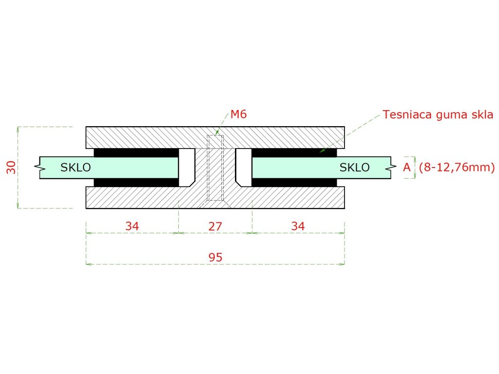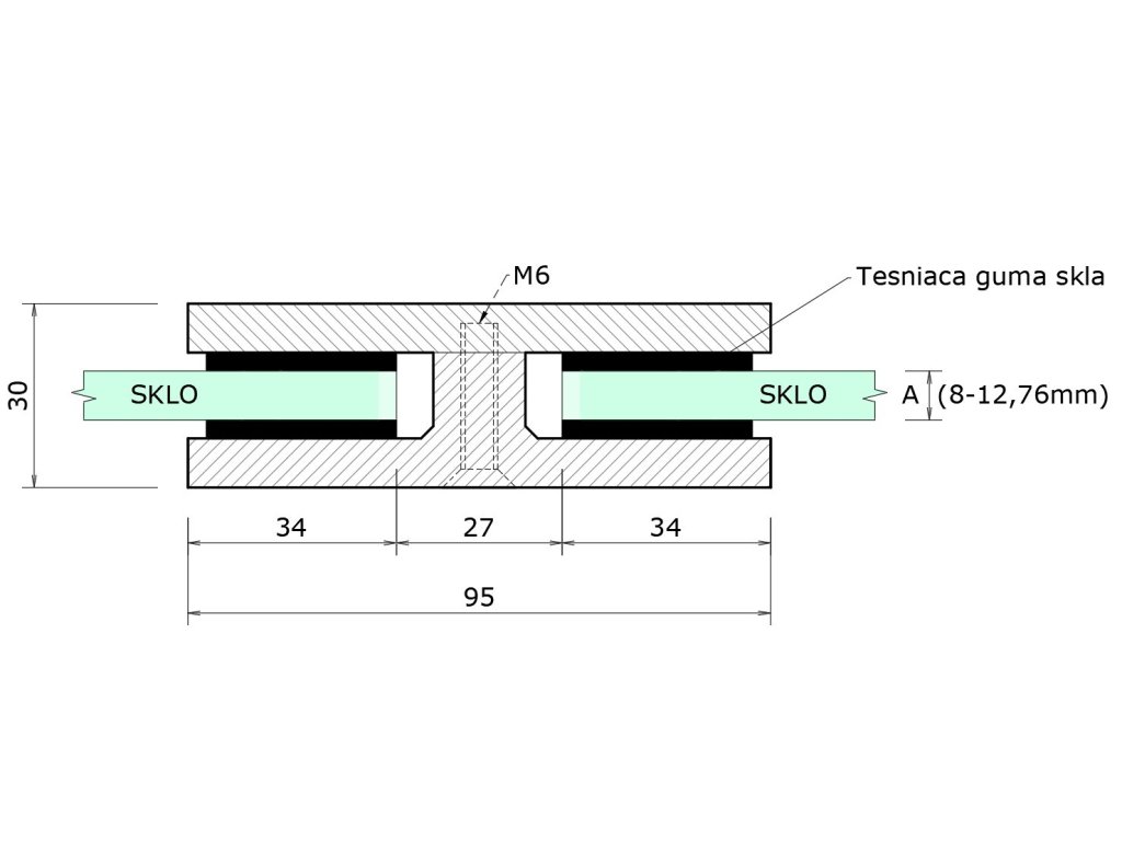 Svorka skla přímá (95x45x30 mm), na sklo 8-12.76mm, broušená nerez K320 / AISI304, balení neobsahuje gumičky na skloDoplňkové parametry