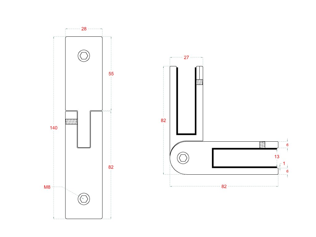 Závěs skla (140x28x27mm), na sklo 12mm, broušená nerez K320 /AISI304Doplňkové parametry