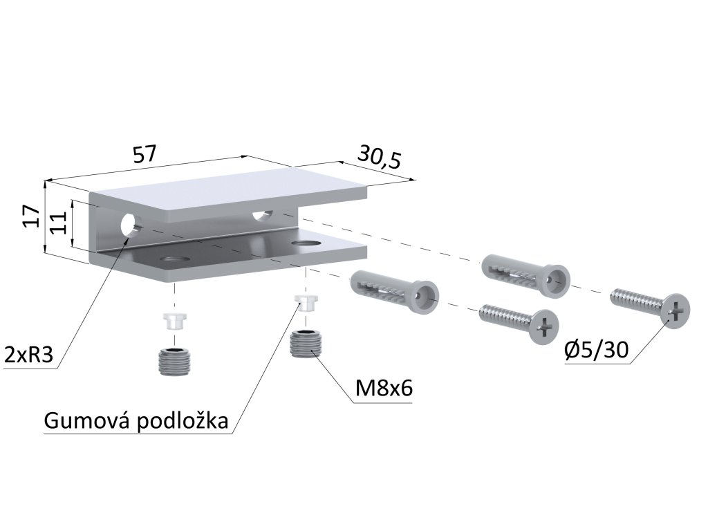 Držák police pro sklo 8-10mm, broušená nerez K320/AISI 304