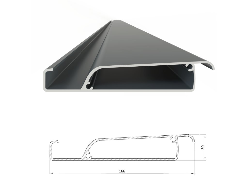 Horní hliníkový profil s lištou zakrývá lamely tak, že z bočního pohledu nepůsobí rušivě a tvoří jednotnou linii s konstrukcí.
